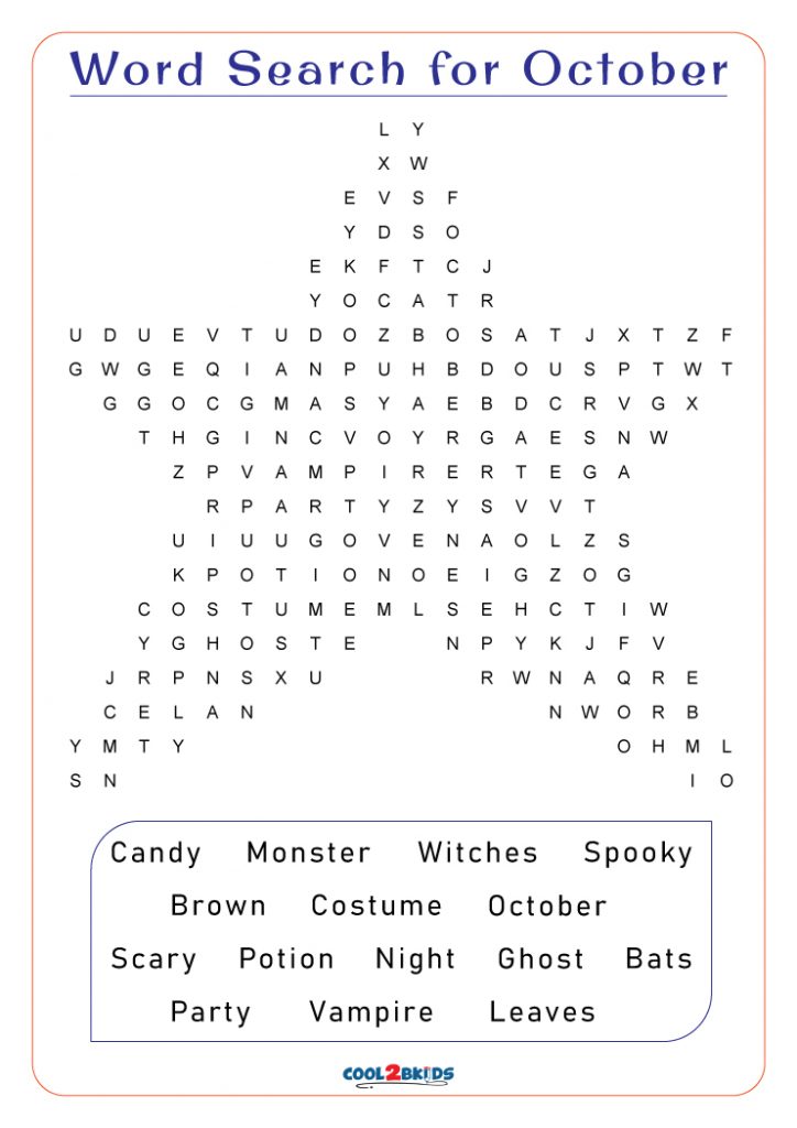 october word search printable for kids halloween word search word from i0.wp.com This printable includes october search terms and phrases. October word search to download and print or play online. This is a printable october word search pdf file, just click on the image to open the pdf, you can save it or print it. Want to extend the activity? Click here to download the october word search printable. There are either 14 or 18 hidden words, depending on the puzzle. The great thing about this fall word search puzzle, is that you can also color … Check out this advance word search maker to create commercial use printable puzzles.
